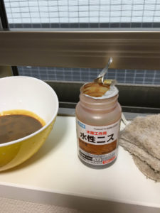 作業台が色落ちしてきたので、塗り直したよ